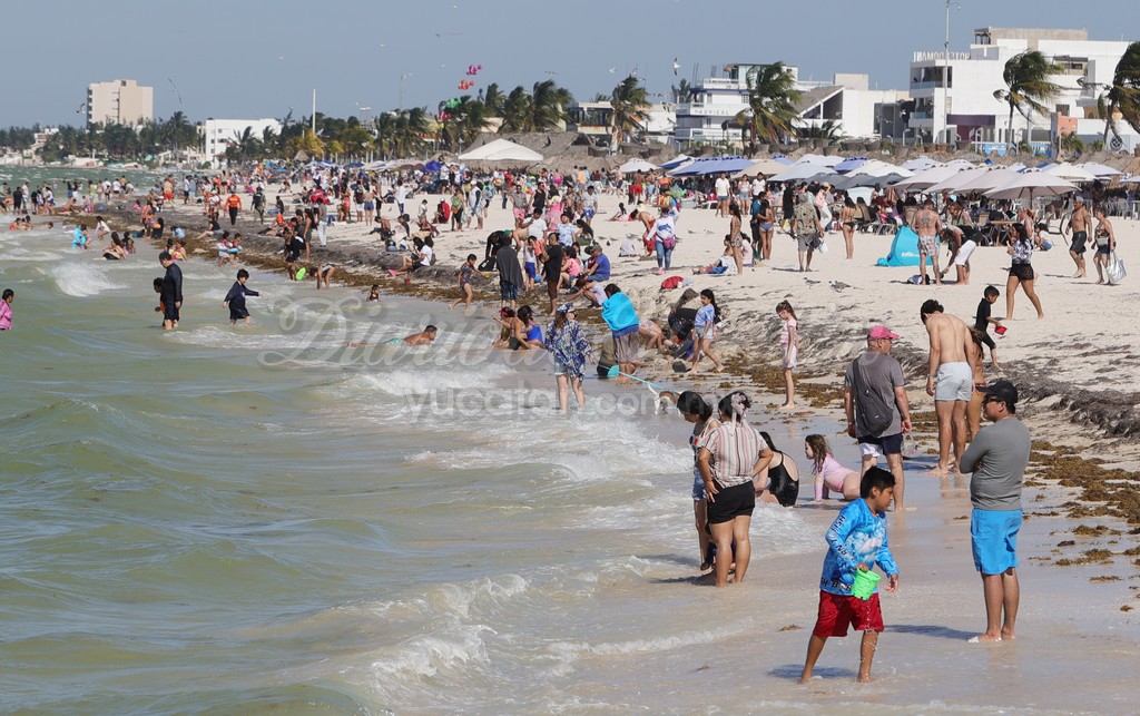 PROGRESO. – Con buen clima, día soleado, ligero mar picado, playas recuperadas, en parte del malecón oriente afectado por la