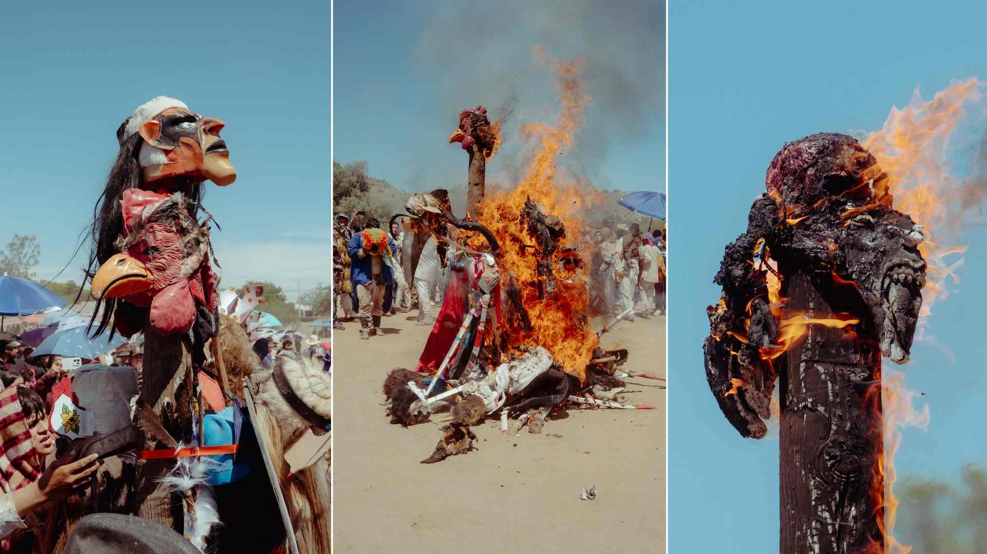 Como parte de las tradiciones de Semana Santa de la etnia yaqui, en la ramada de San Juan Bautista en