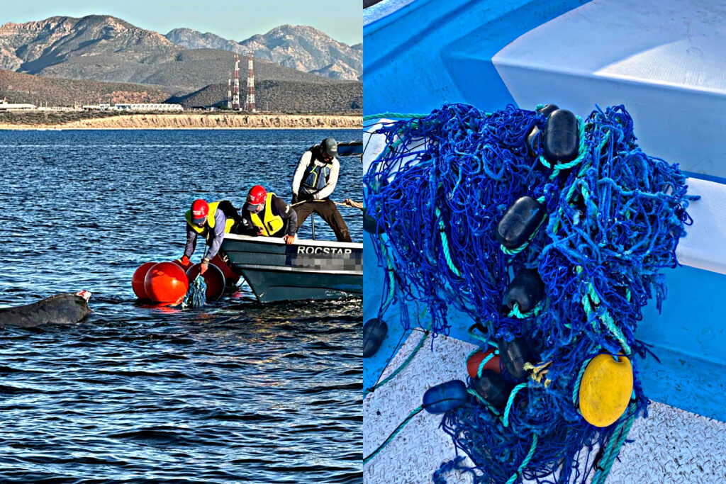 Las labores de rescate iniciaron en aguas de Loreto y culminaron en La Paz; la ballena estaba atrapada en redes